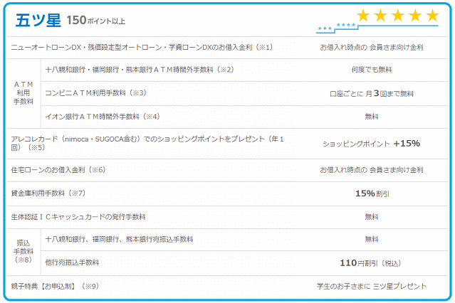 インターネットバンキングを利用すれば、十八親和銀行、福岡銀行、熊本銀行宛ての振り込み手数料が無料になる点は良いとしても、他行宛ての振り込み手数料が最大で440円も必要になる点には、がっかりです。