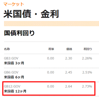 次に、1年物の米国国債の利回り2.73%で、30年間運用した場合を想定します。米国債も、ネット証券で気軽に買う事ができます。