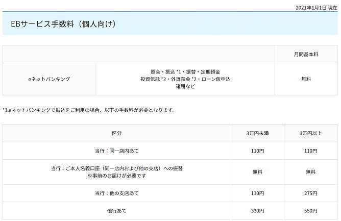 なお、振込手数料などは高すぎて、まったく使い物になりません。ネットバンキングを利用した他行あての振り込み手数料は最大で550円です。これでは、利息が一瞬で吹っ飛びますので利用できる代物ではないと言えるでしょう。