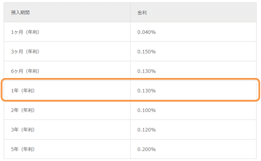 そこで、auじぶん銀行の定期預金の金利を参考に計算して確認してみました。下記の1年物の定期預金に300万円を預けた場合の影響をチェックしてみましょう。(2019年時点で見ると、随分とここから金利が下がっていますね・涙)