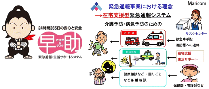 ゴールド定期預金・安心伝心は、緊急通報・生活サポートシステム「さすがの早助(サスケ)」のシステム機器が景品としてセットになる定期預金です。