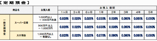 | 3ケ月物 | 0.05% | 0.3% | 新規定期預金の人 |