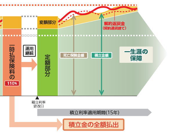>>積立利率は1.35%で、到達目標を110%とし、契約日から15年後には最低でも