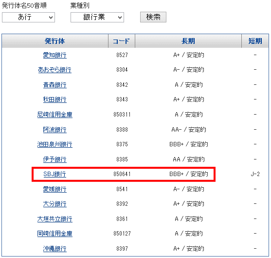 ではSBJ銀行に、破たんリスクはあるのでしょうか? 仮に破たんしても、上述したように預金が戻ってくるので、基本的に心配することはありませんが、やはりなんとなく気になるという事で、日本で格付けを行っている期間の格付け情報をチェックしてみました。