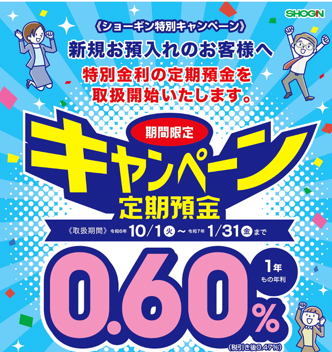 2025年1月31日まで期間限定「キャンペーン定期預金」の取り扱いが始まりました。0.6%の高金利の定期預金です。広島県内ではピカイチの銀行と言えます。